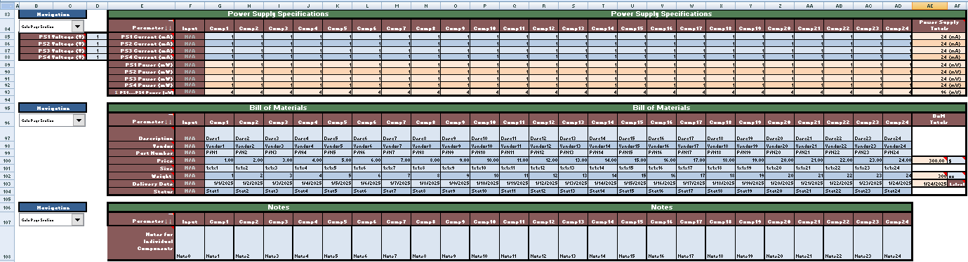 Basic for Applications (VBA) routines, mouseover hints, dropdown selection boxes,