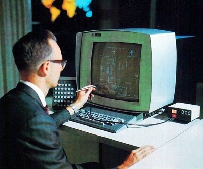 Systems Laboratory console. Using light pen and typewriter he draws an