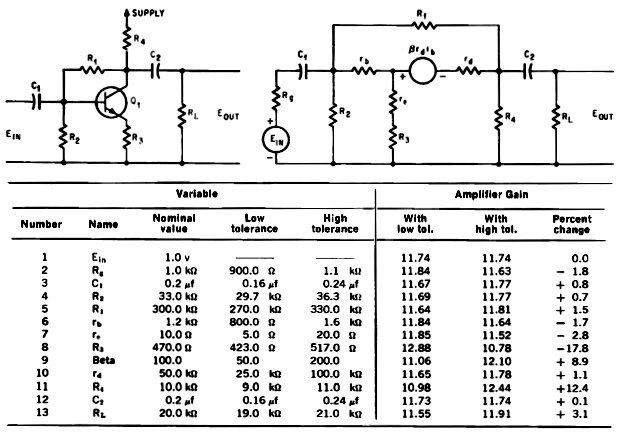 amplifier shown here, using the Arinc program, an equivalent circuit, top right,
