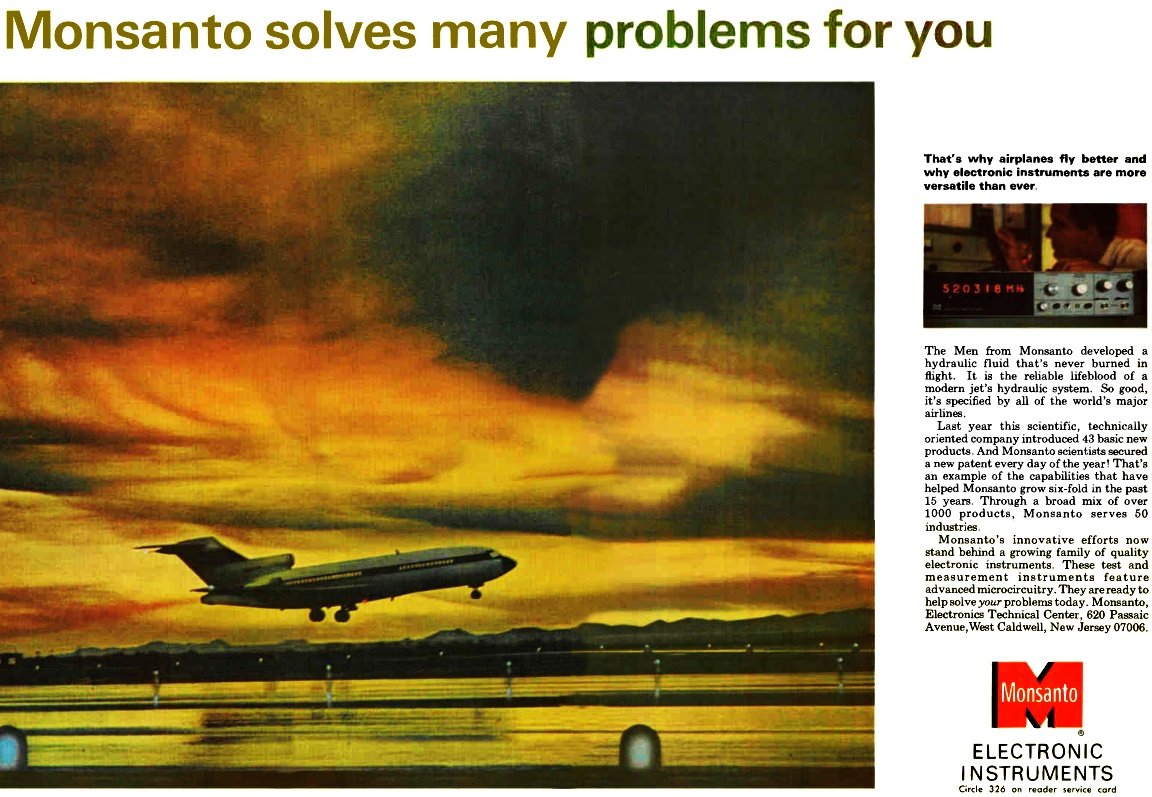 The Men from Monsanto developed a hydraulic fluid that's never burned in flight.
