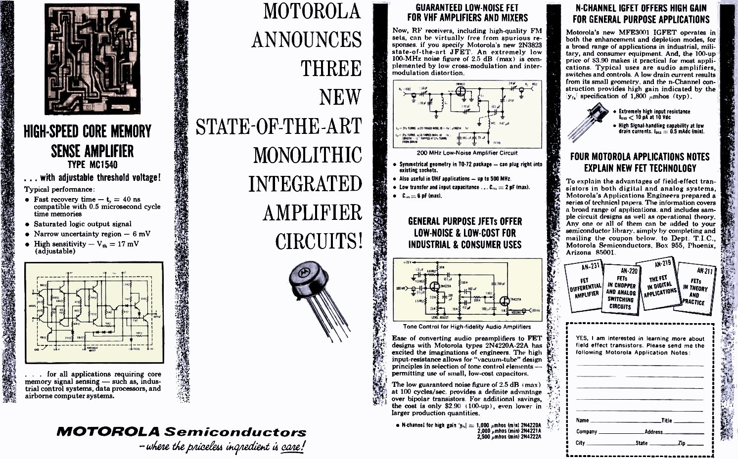 just entering the mainstream of electronics in 1966 when this two-page Motorola