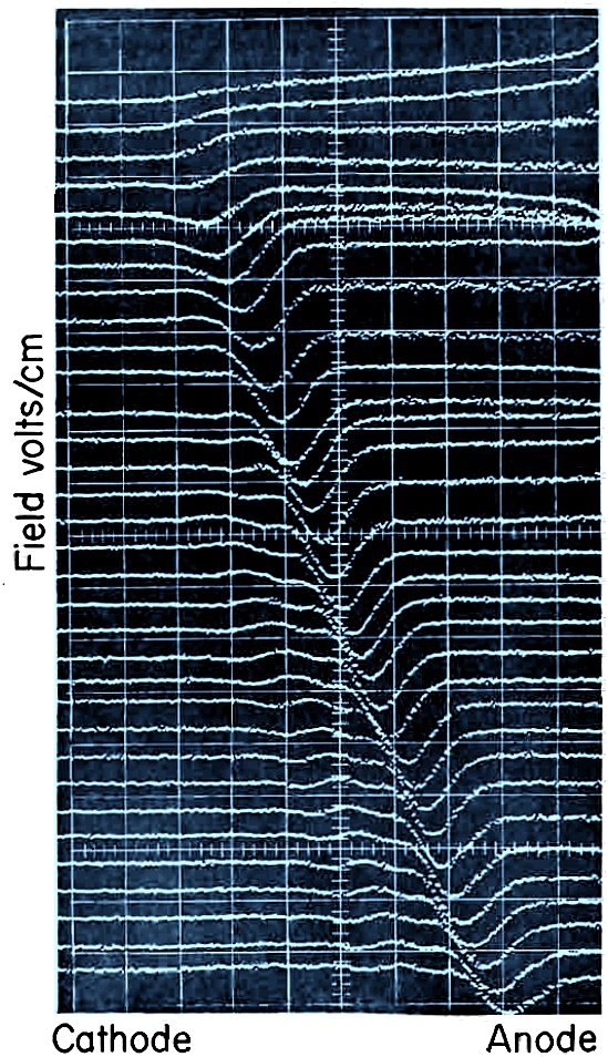 is shown at points progressively closer to the anode. If the frequency of oscillation