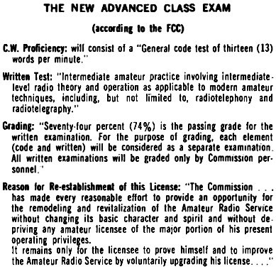 For the 40,000-odd hams who still hold the pre-1951 Advanced Class tickets, the