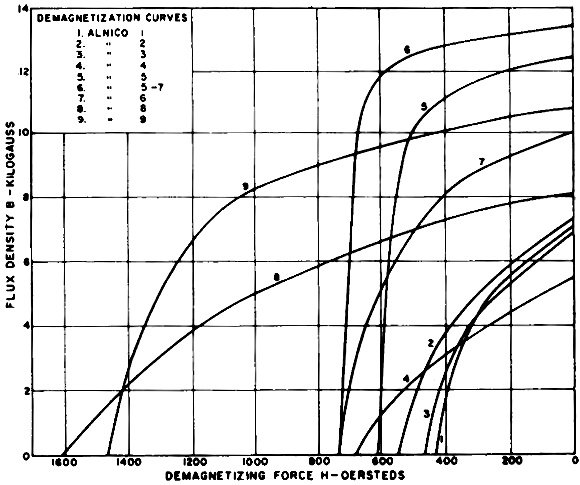 Fig. 3 - Comparative demagnetization curves for various Alnicos.