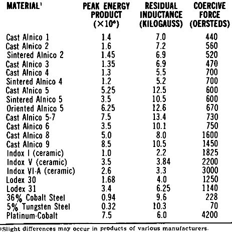 Table 1 - Characteristics of permanent magnet materials.