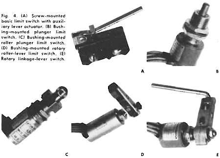 pressures), temperature-sensitive switches, and various limit switches (plunger,