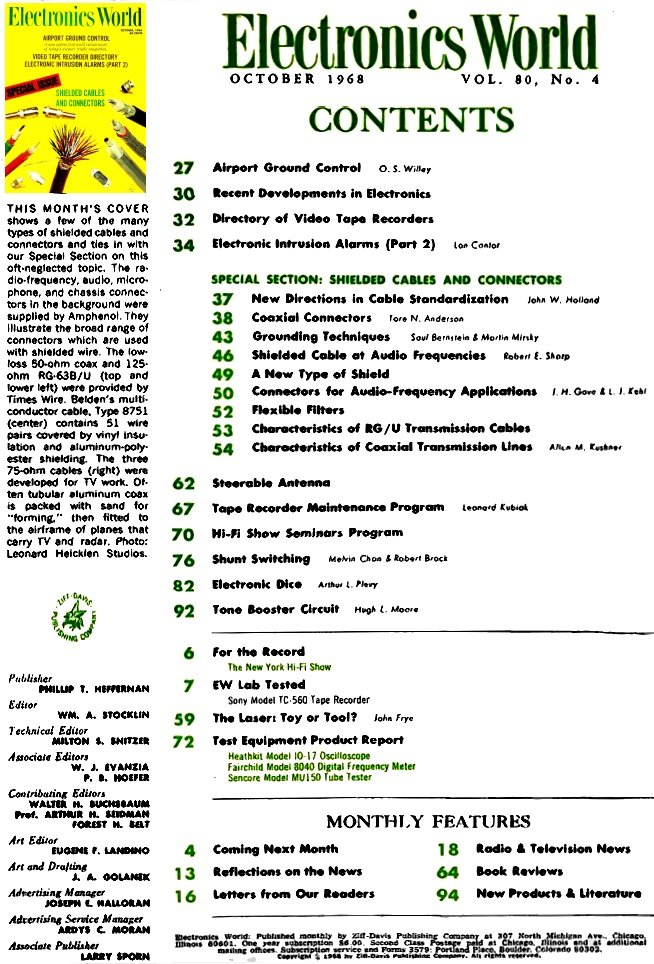 October 1968 Electronics World Table of Contents