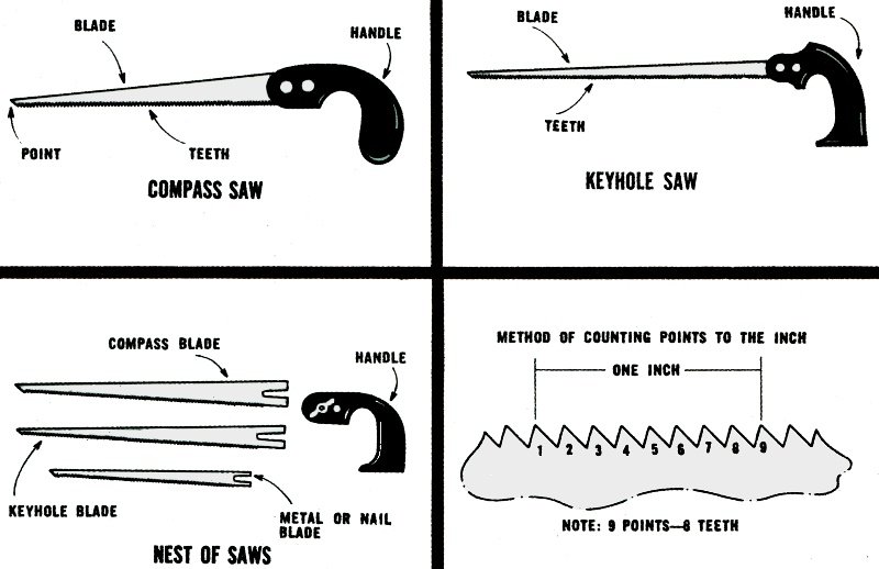 joinery, and specialized varieties like plumber's, coping, compass, and keyhole