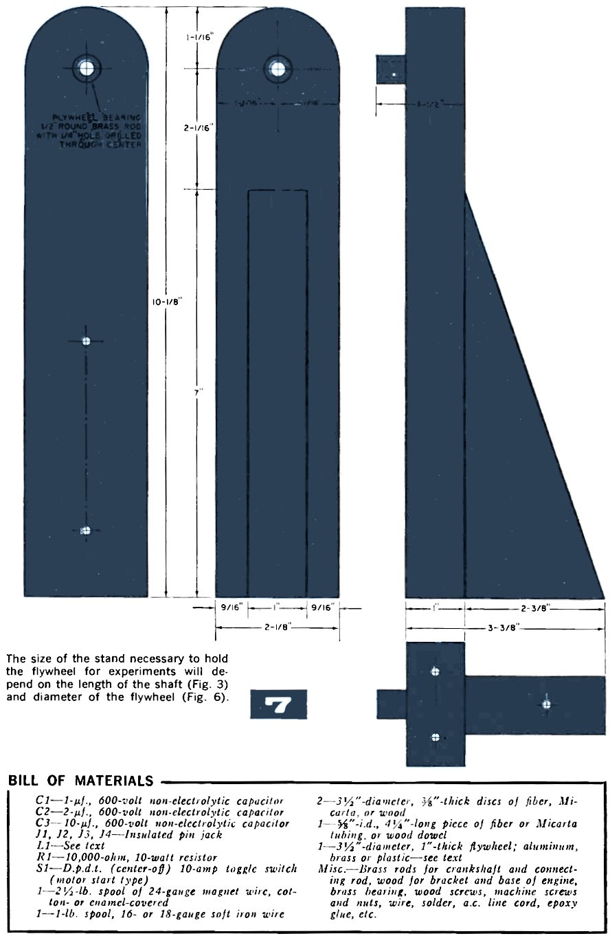 the flywheel. At right, below, are two possible ways of constructing the engine