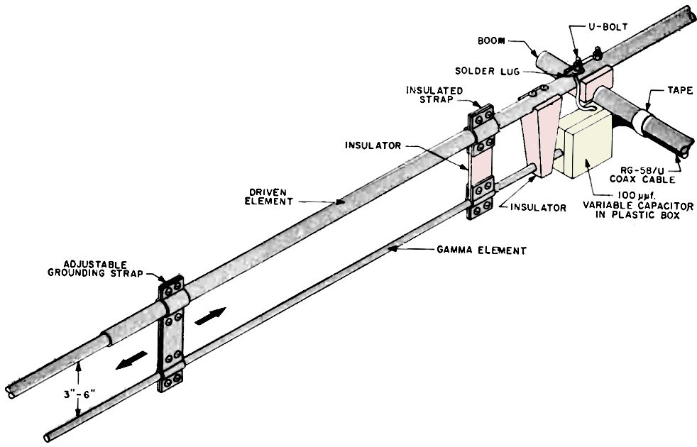 foot 52-ohm coaxial cable (RG-58/U). In adjusting the dimensions of the gamma matching