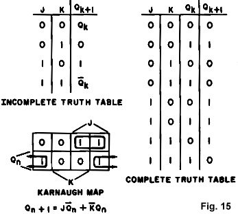 Fig. 16 shows the construction of the J-K from the R-S using two AND gates.