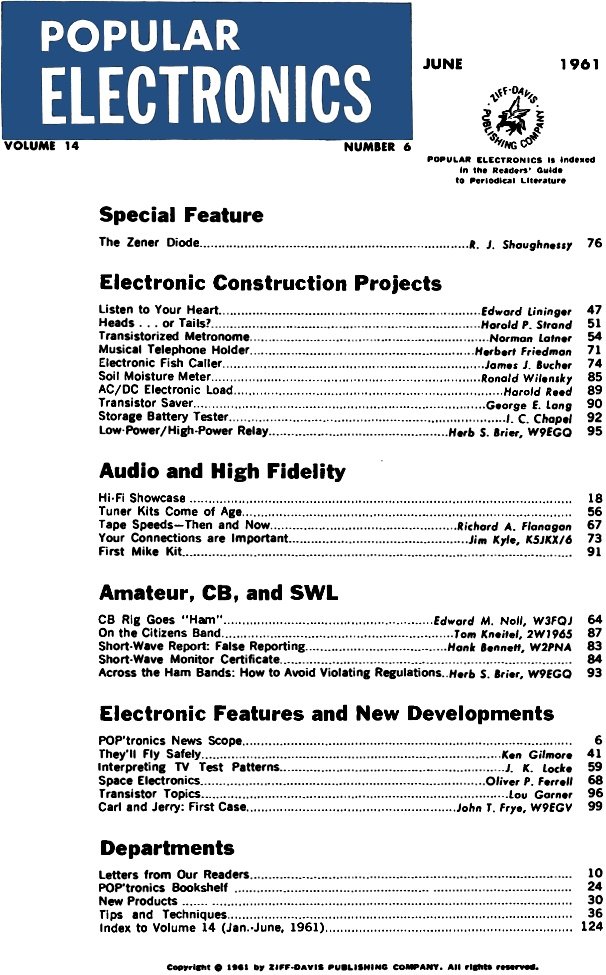 June 1961 Popular Electronics Table of Contents