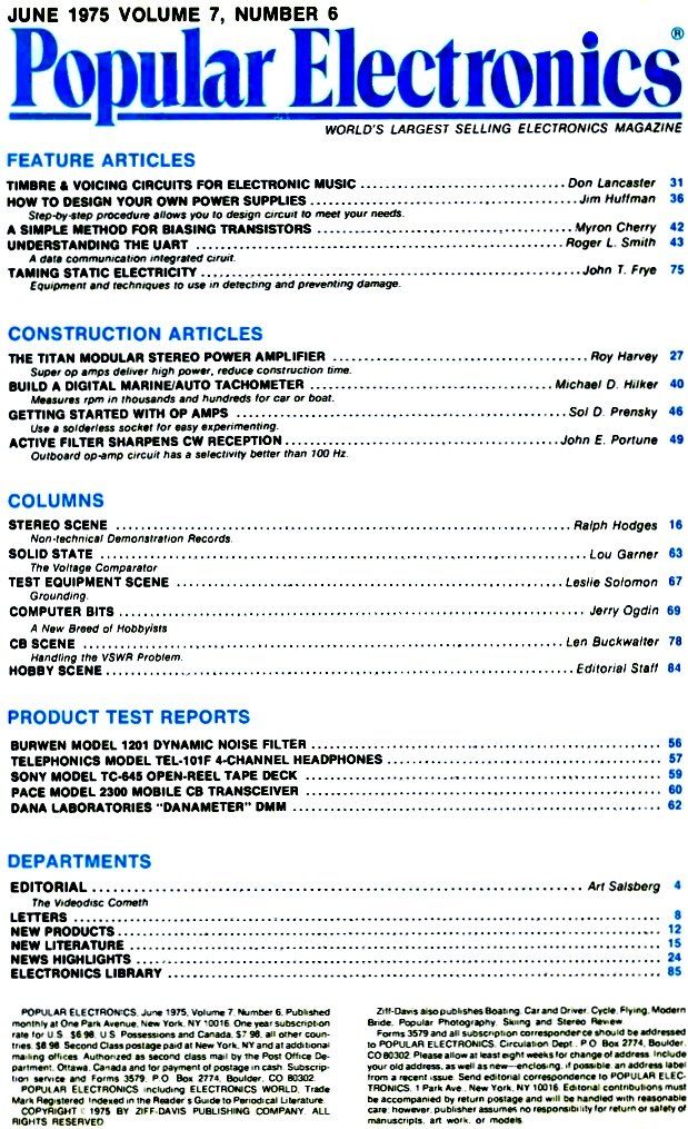 June 1975 Popular Electronics Table of Contents