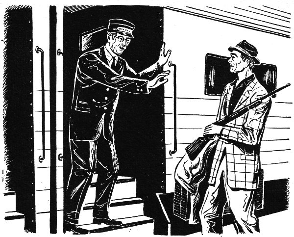 says, "No, sir, not on this coach!" The baggage-car attendant says, "Sorry - we're