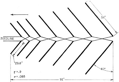 pattern from the V-ing of the elements and the phase-reversed feeder.