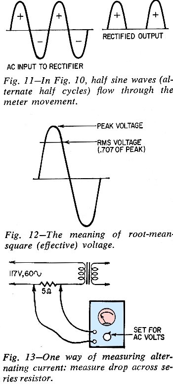 Because ac voltmeters like the one diagrammed in Fig. 10 are calibrated to read