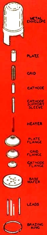 The job of putting a nuvistor together is simple. You start with the parts shown