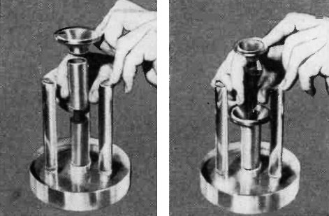 shows some of the steps in assembling a large-scale model of the nuvistor triode.)