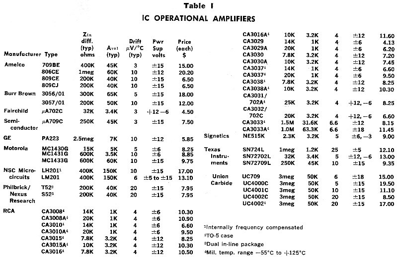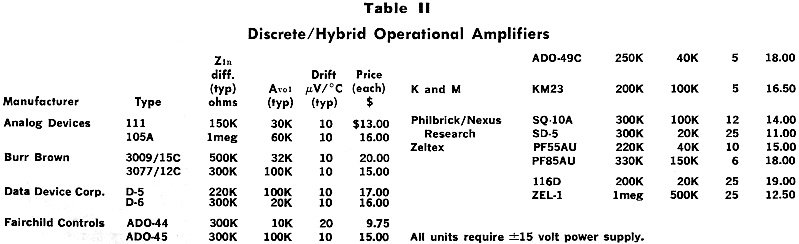 Tables I and II list a wide selection of integrated and discrete operational