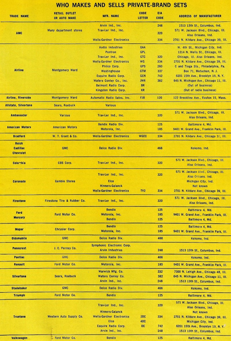 Several companies make private-brand automobile radios for Ford, Chrysler and