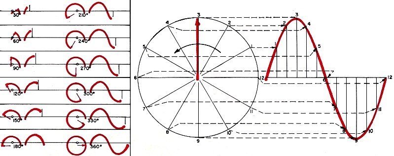 at a sine wave. But in dealing with the many alternating currents and voltages we