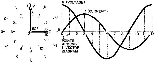 reactance. Points on sine-wave graphs are keyed with numbers to corresponding points