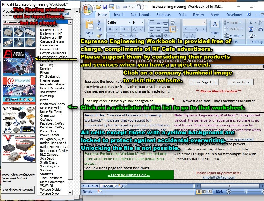 RF Cafe's spreadsheet-based engineering and science calculator,