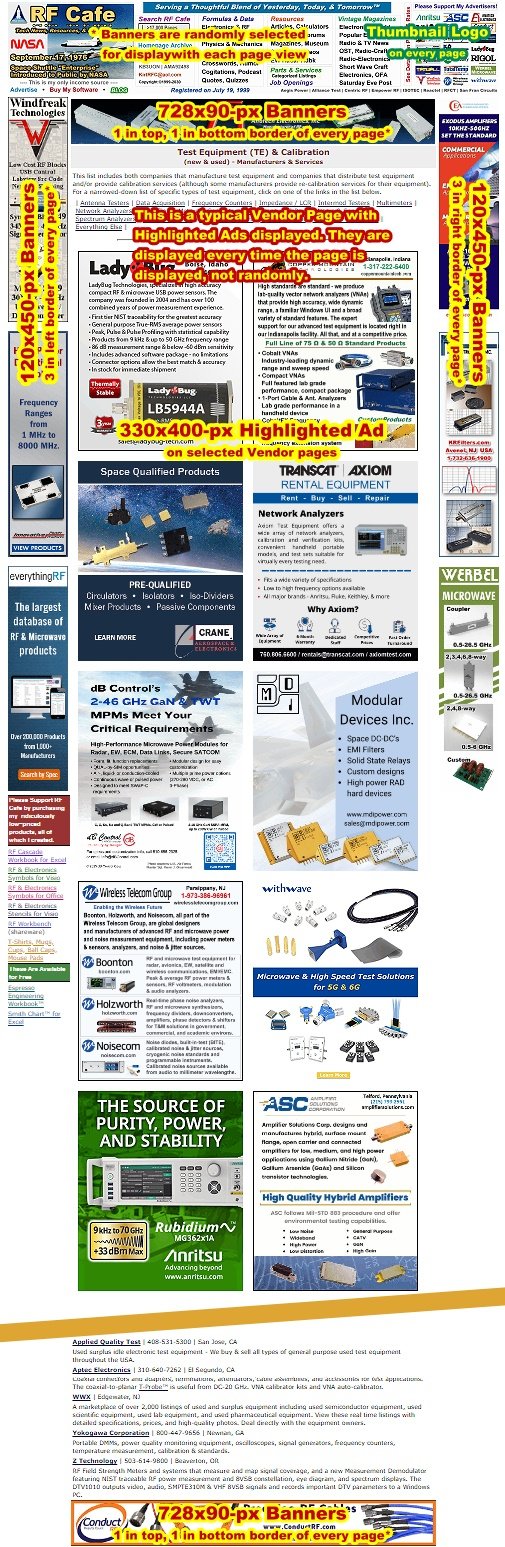 Vendor pages on RF Cafe,