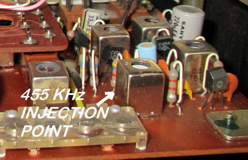 sets I injected the 455 kHz signal directly via a 1.8 kΩ resistor between the center pin of the