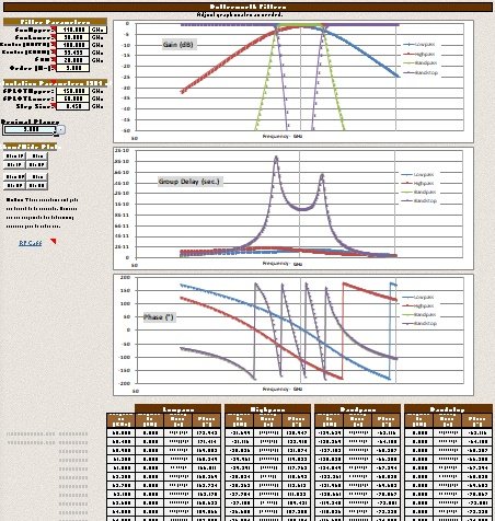 delay (seconds) for all four standard configurations - lowpass, highpass, bandpass,