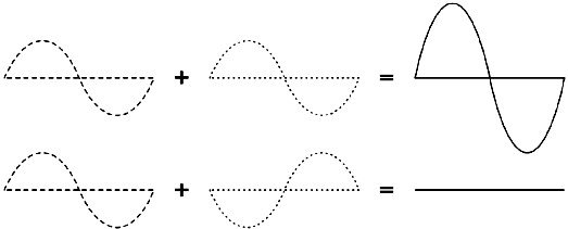 with waves, one plus one does not necessarily equal two. It can also result in zero.