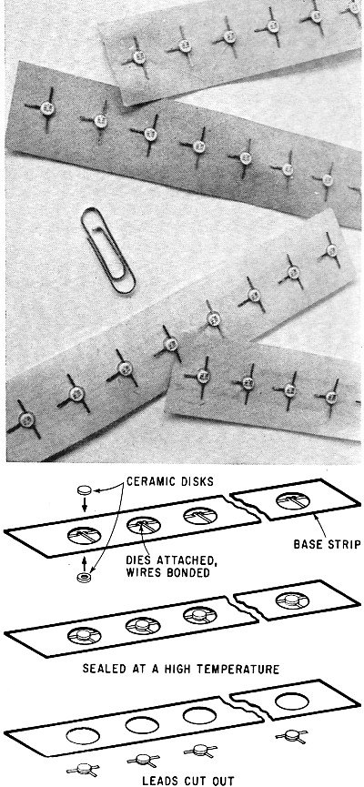 handling. The transistors are mounted in tiny ceramic headers called Micro Disks