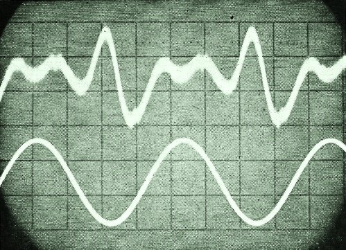 out, is the lower trace on the oscilloscope screen. The residual output shows that