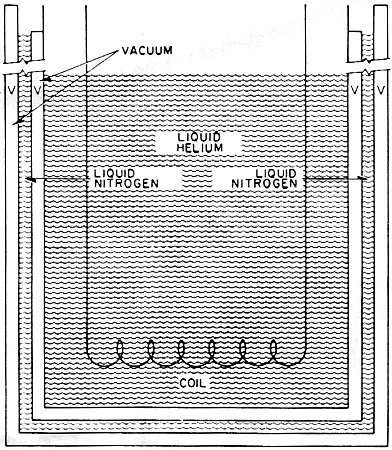 submerged in liquid helium. Liquid nitrogen at -322°F and the two vacuum chambers