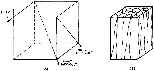 Fig. 1 - (A) A crystal of silicon steel, showing relative difficulty