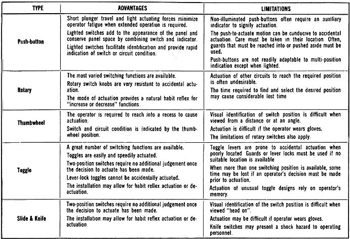 Table 1 - Comparison of manually actuated switches with their