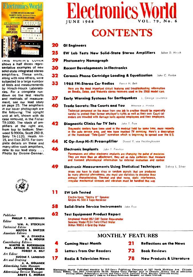 June 1968 Electronics World Table of Contents