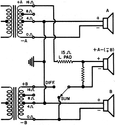 All of the circuits, except that employing three amplifiers, assume speakers