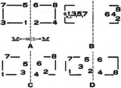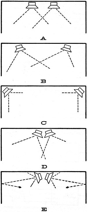 In a 16 foot by 25 foot room, the various arrangements of speakers shown in Fig. 1