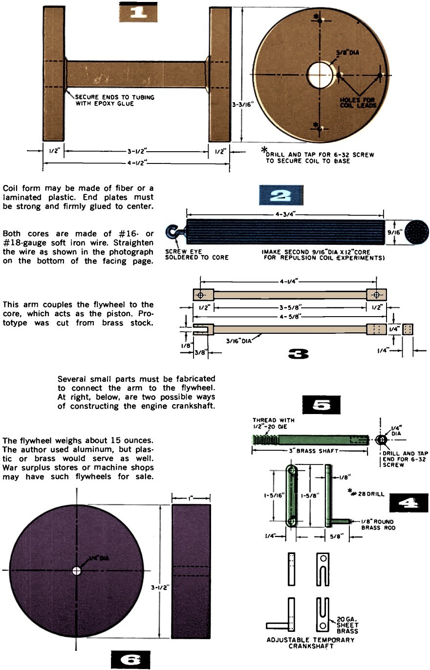 the flywheel. At right, below, are two possible ways of constructing the engine