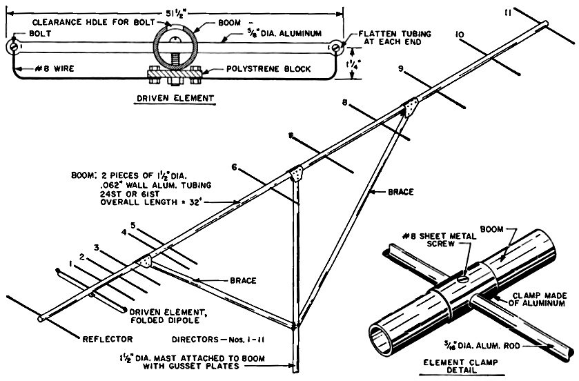 An inexpensive antenna can be made from a cut-down channel-6 Yagi television