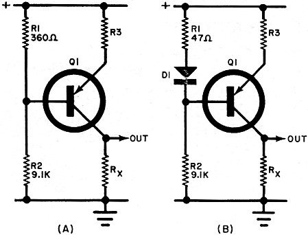 where a diode has been added in series with R1. If Q1 is a silicon type, the diode