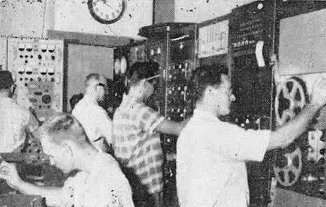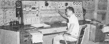 radar feeds position information to an IBM 704 computer. The computer has been programed
