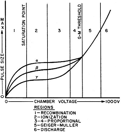 between alpha, beta, and gamma ionization current pulses as shown on the graph.