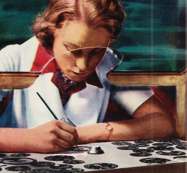 compounds. Here a worker paints aircraft instrument dials with a radium compound