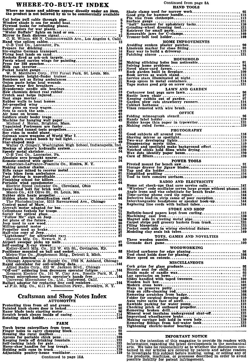 June 1944 Popular Mechanics Table of Contents