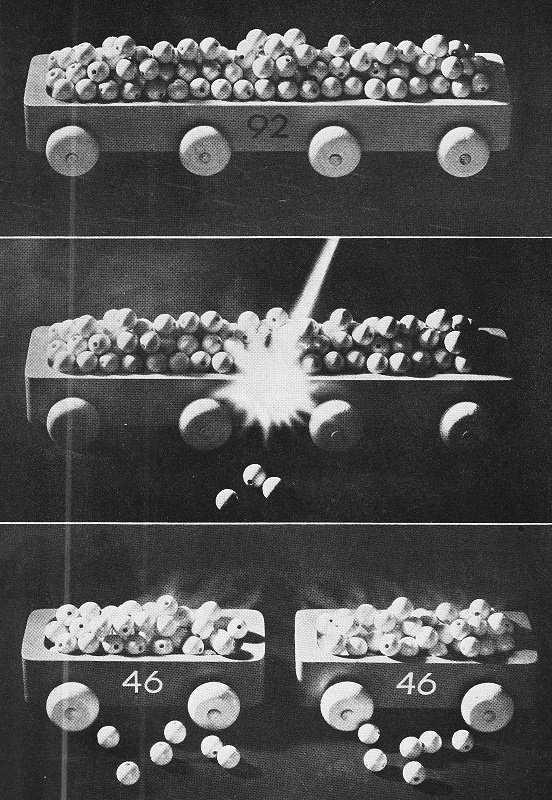 with 92 protons can retain 143 neutrons, as in cart at top. Splitting the nucleus