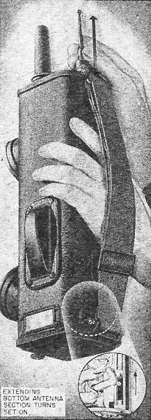 button. The "on-off" switch is mounted inside the set and is operated by the telescoping