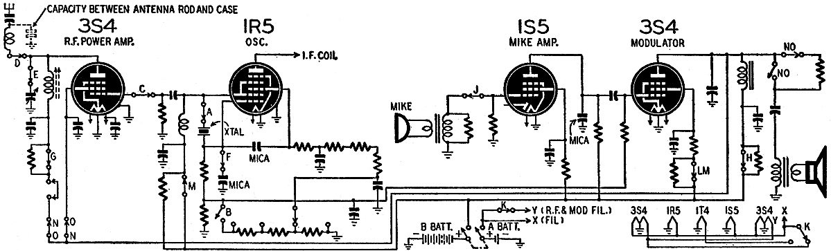 as r.f. power output tube. The 1S5 and the other 3S4 are speech amplifier and modulator,