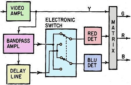output of the delay line and is fed to the red detector, and a blue (B - Y) signal